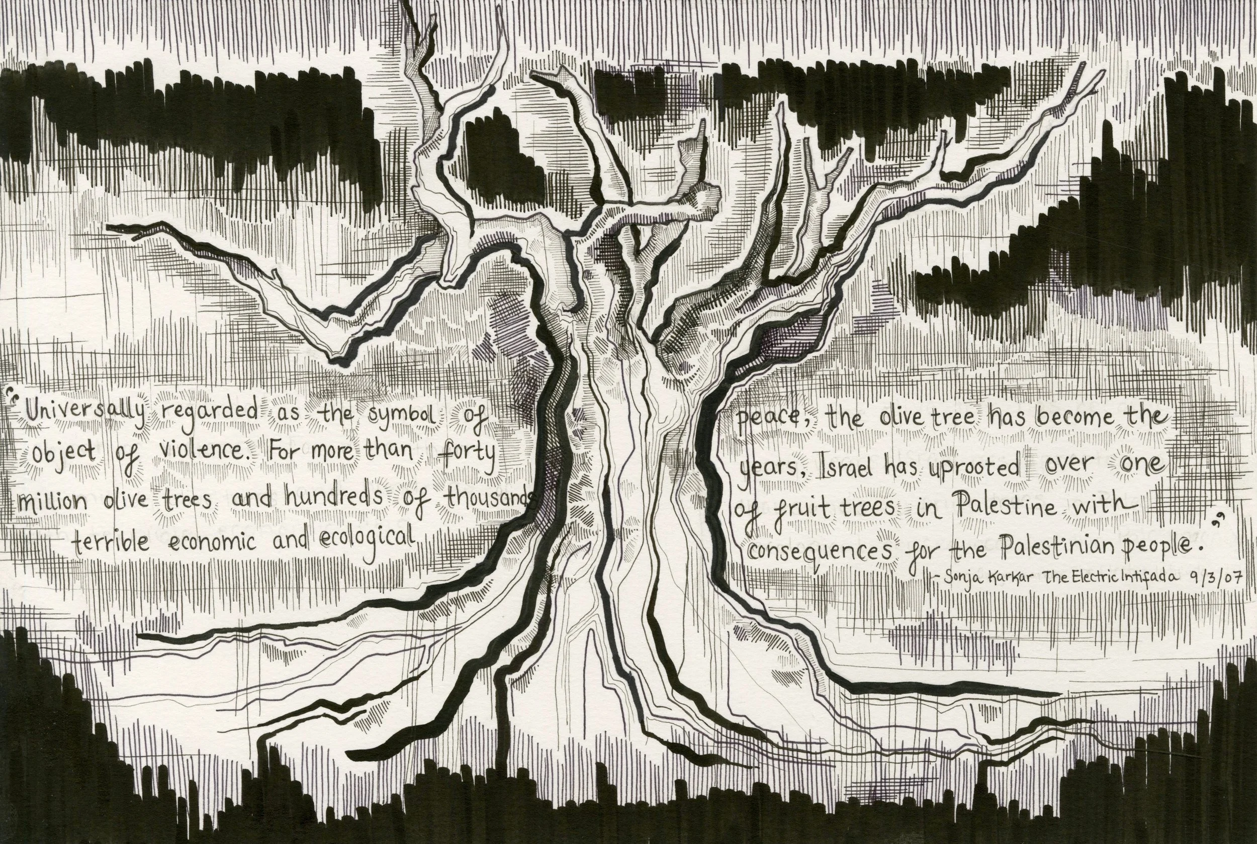 Hanukkah is a celebration of the miracle of olive oil. This is a drawing I made in 2016.