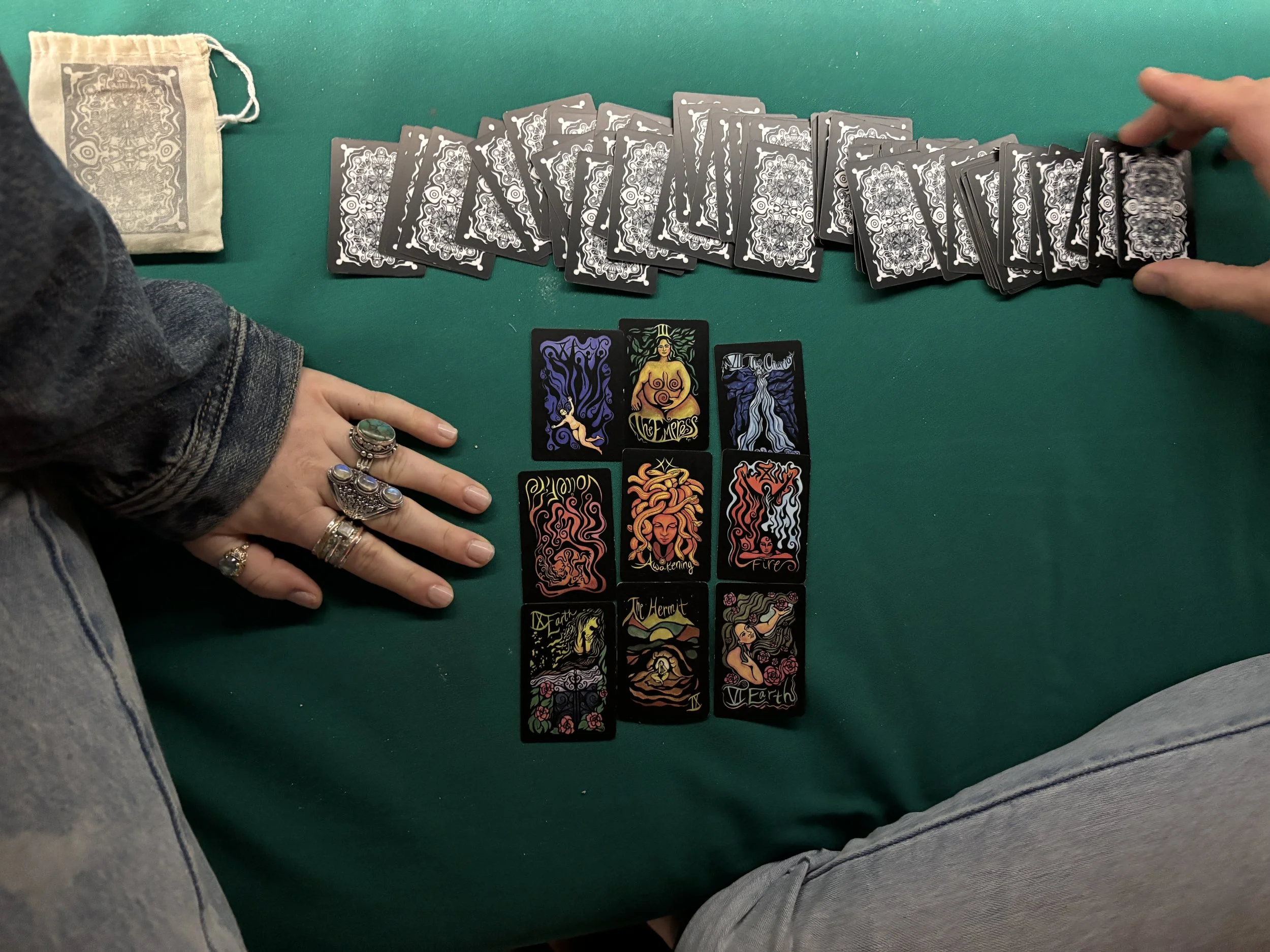 I offer 1-hour Tarot readings on Zoom. Over the course of the hour, we will pull 9 cards together. After our meeting, I will send you a photo of my handwritten notes and a photo of the spread.